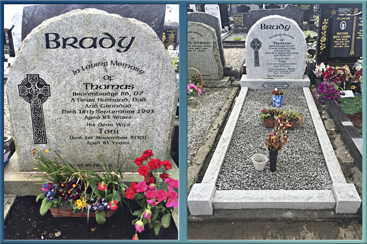 Are you abroad? Balgrififn Headstones can visit your grave and give you professional advice on how to restore and maintain the grave. We can even send you a photo of the grave once we have finished renovating your headstone.We have renovated many graves for people living in the U.K, America and Australia.